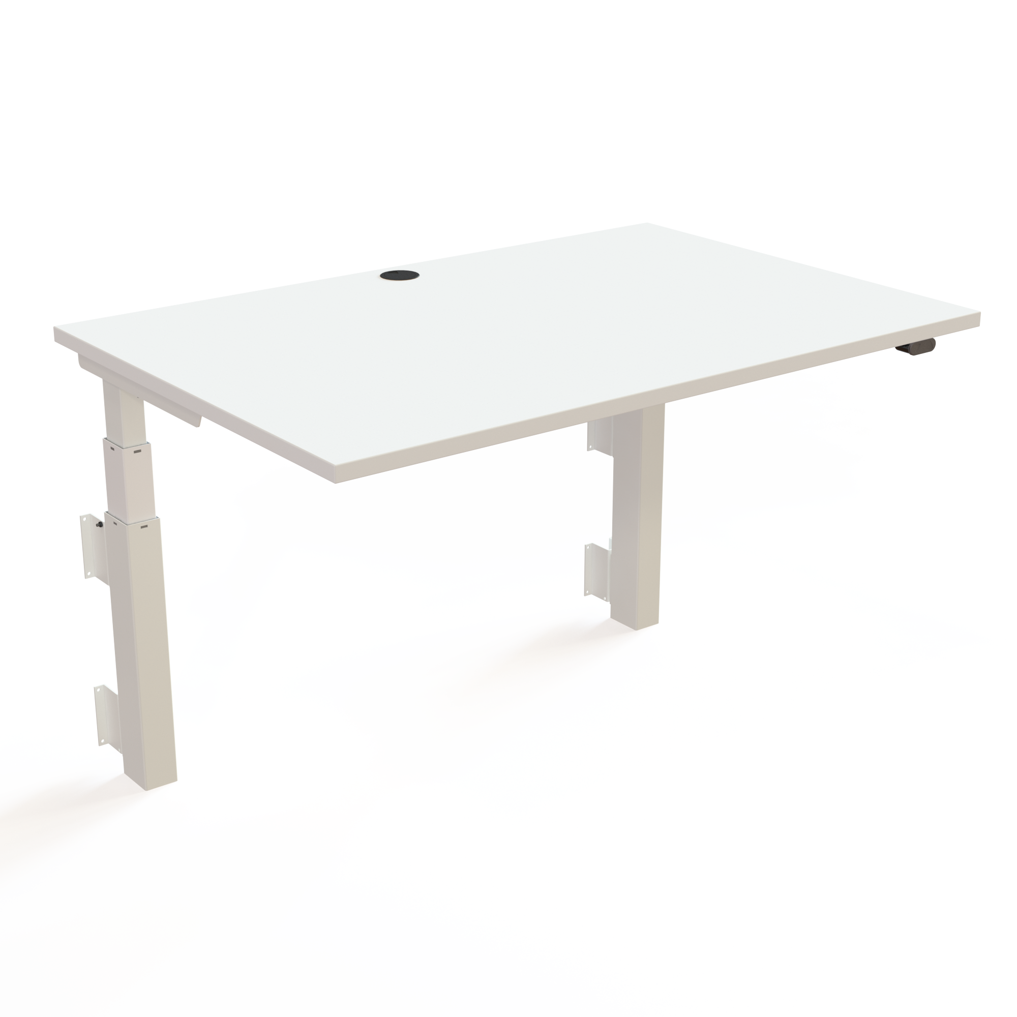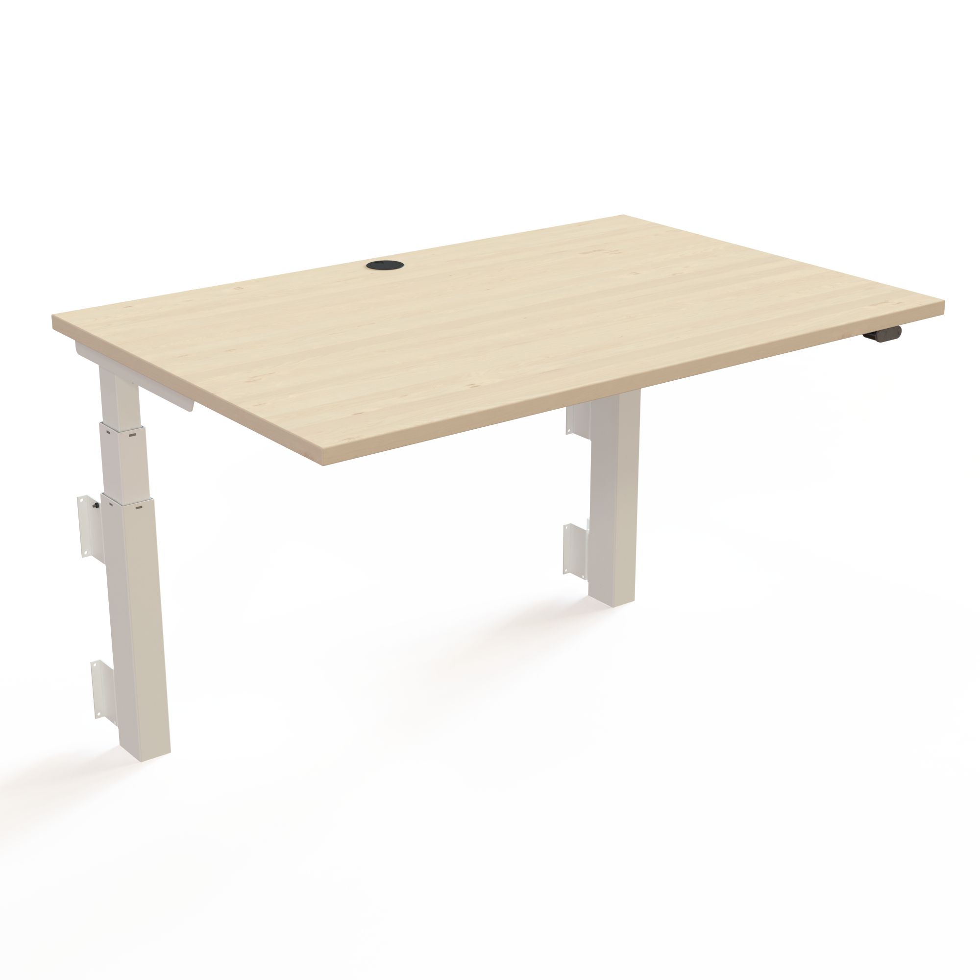 A square tabletop with all known advantages: Flexible and uncomplicated. A centered 60mm grommet is standard. Probably just as expected.
